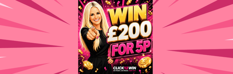 Join the Click12Win community today and start entering UK online prize draws for as little as 50p a ticket. From £1,000 cash prize competitions 💷 to luxury advent calendar giveaways 🎁, your next click could be your next big win.