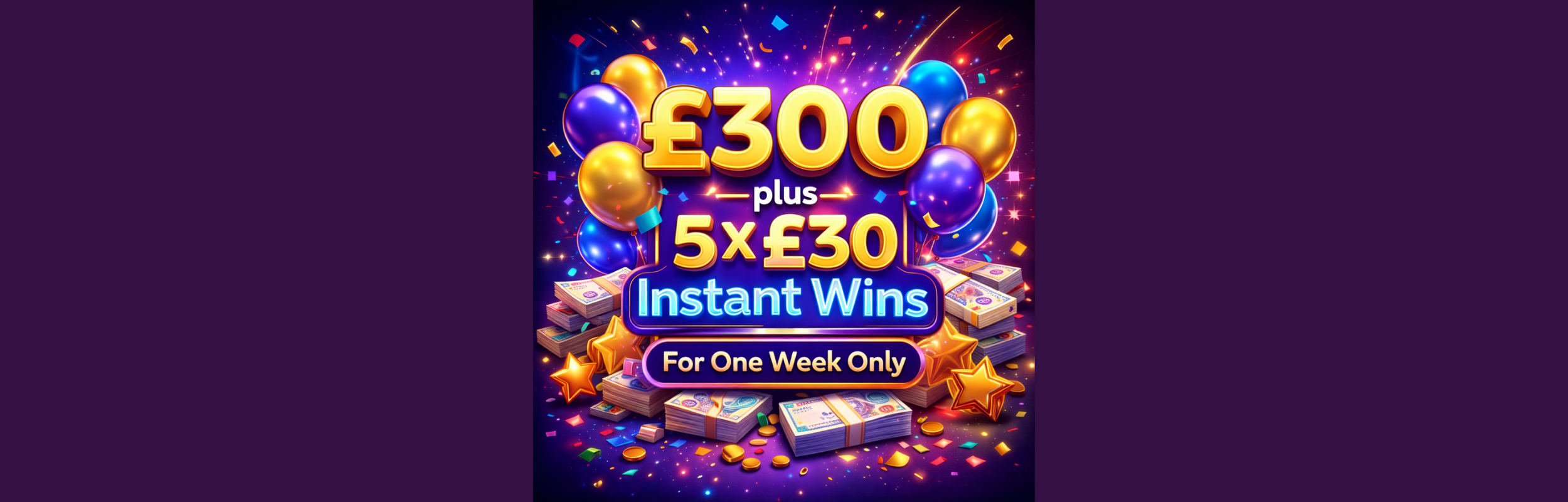 A £300 Cash grand prize plus 5 £30 Cash Instant Wins!