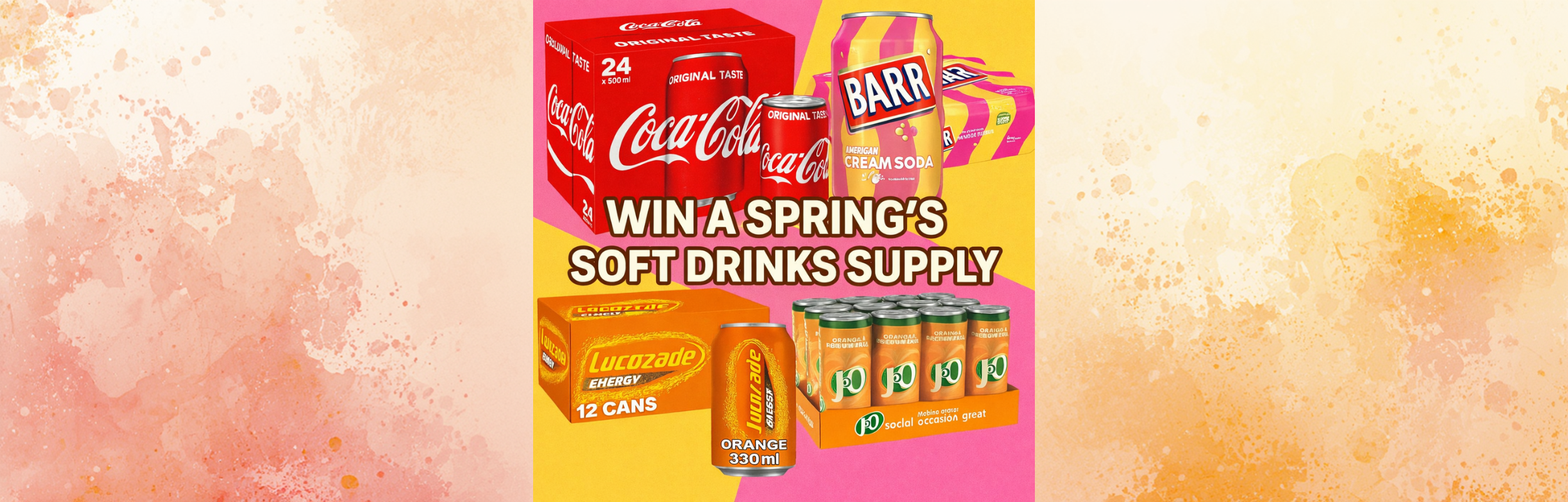 Win a bundle of soft drinks for spring! You’ll receive at least 84 cans in this prize, which may vary from those shown in the image.